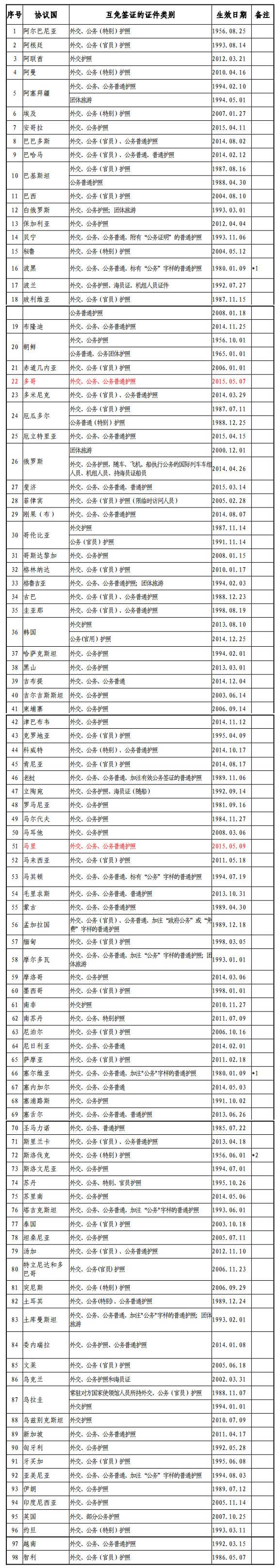 中國與外國互免簽證協(xié)定一覽表(2015年5月9日更新)